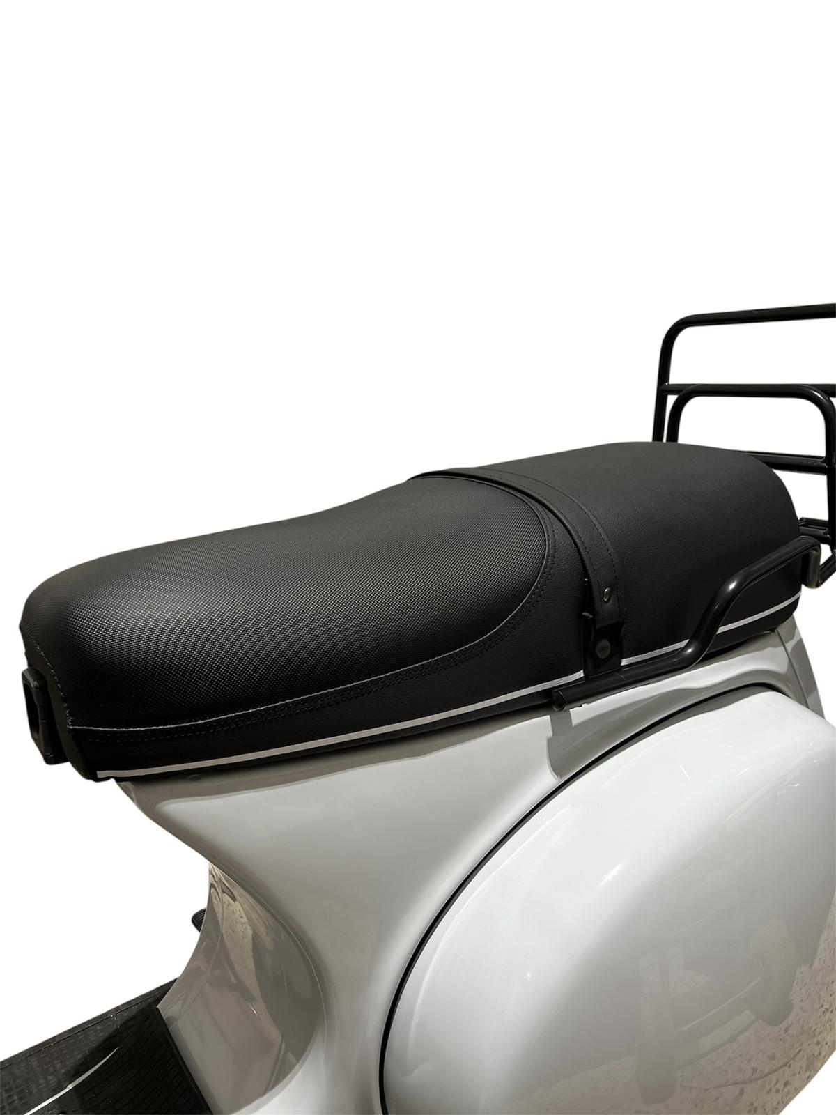 Rivestimento sella dedicato a Piaggio Vespa, realizzato in pelle antiscivolo per garantire una guida sicura, confortevole e stabile in ogni condizione.