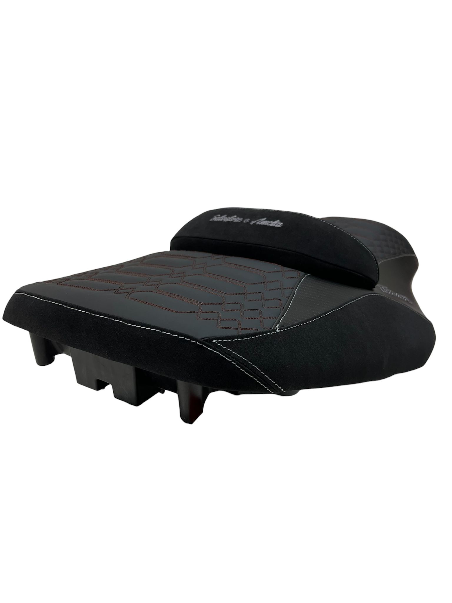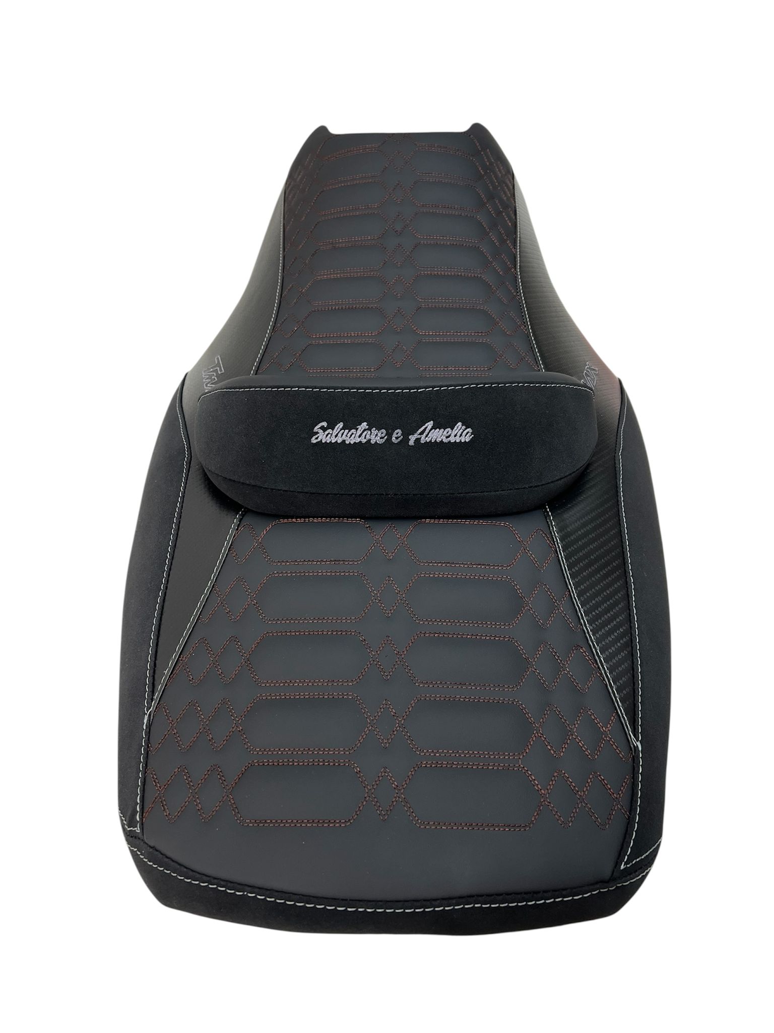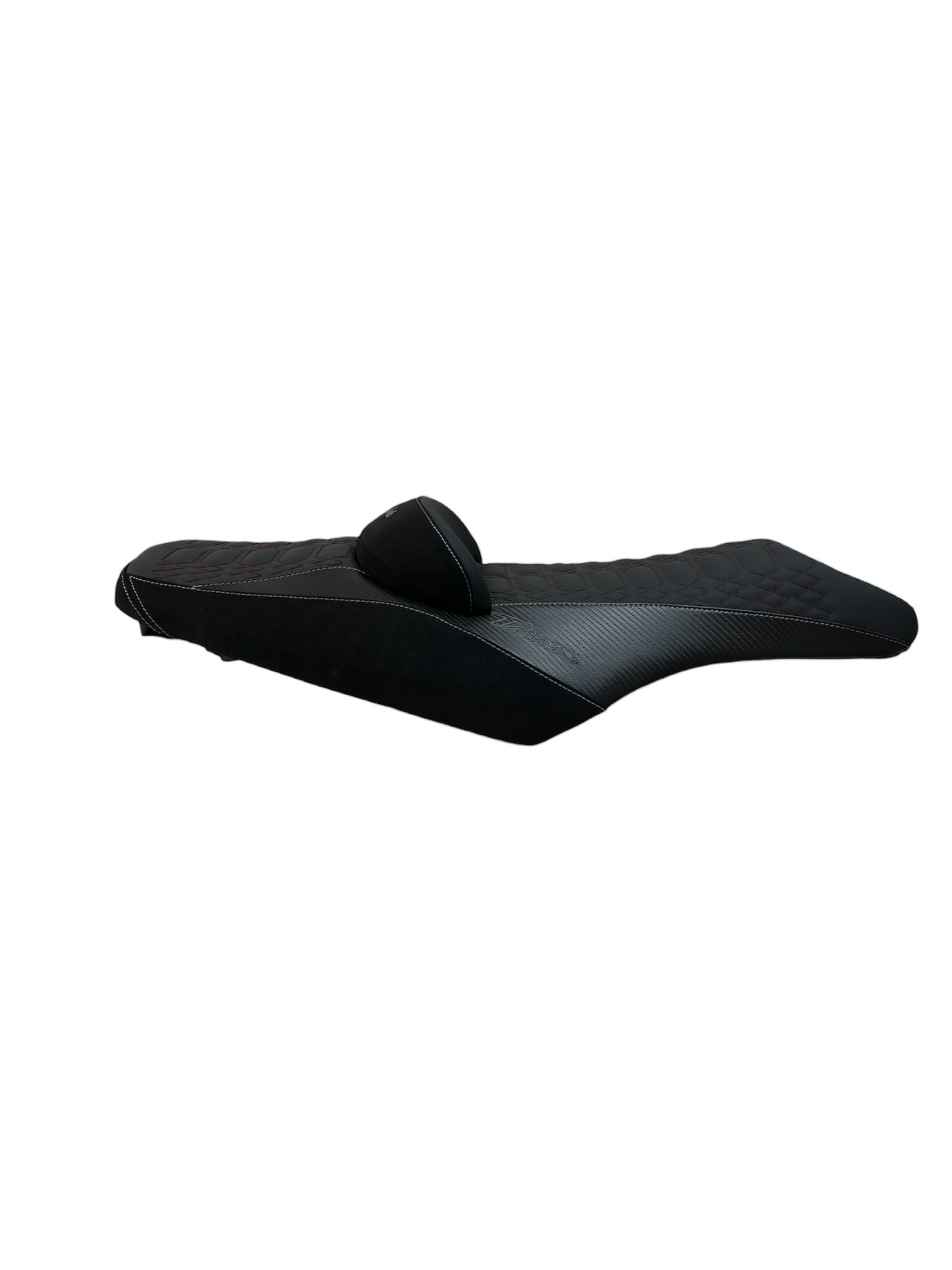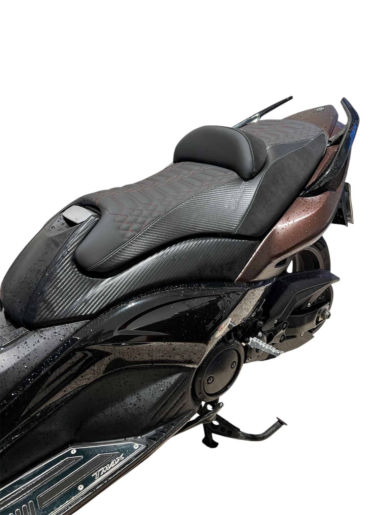 Rivestimento sella dedicato per Yamaha T-MAX 530, realizzato in materiale effetto fibra con lavorazione trapuntata, pensato per rinnovare completamente l’aspetto della sella originale con uno stile sportivo e raffinato.