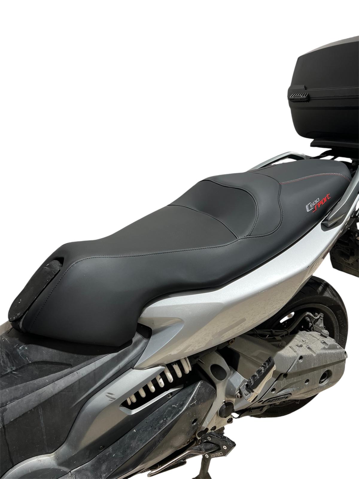 Rivestimento per Sella dedicata BMW C600, progettata per offrire massimo comfort di guida e un’estetica elegante in perfetto stile BMW.