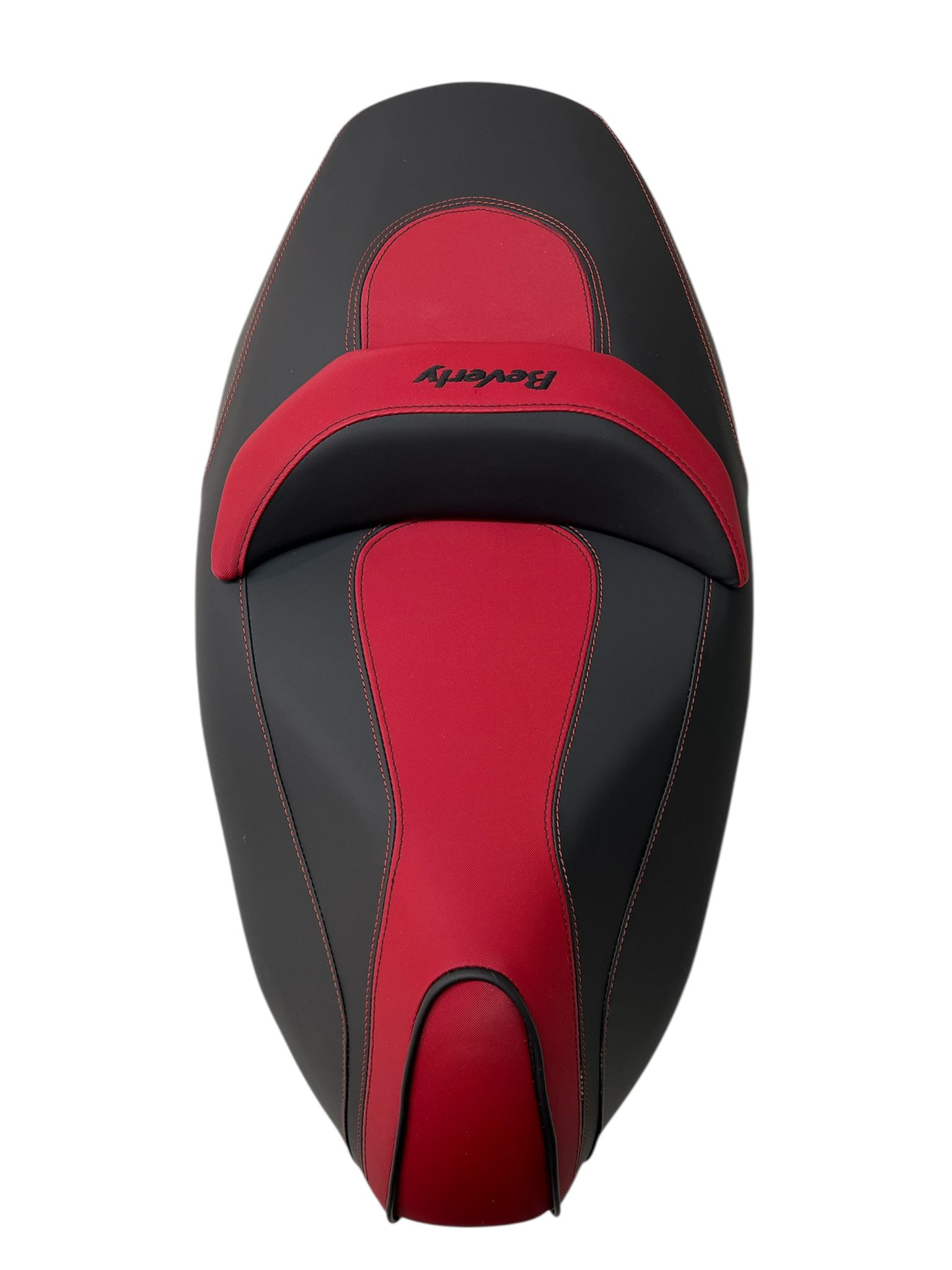 La parte centrale colorata (visibile in foto nella versione rossa) può essere realizzata nel colore che preferisci, permettendo di personalizzare la sella in base allo stile del tuo Beverly.