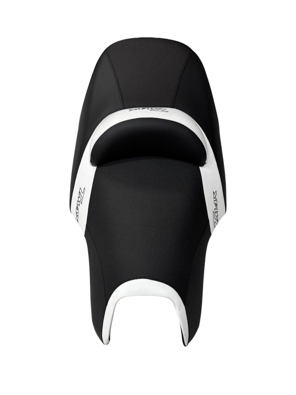La fascia centrale (visibile in foto nella versione bianca) può essere personalizzata nel colore che preferisci, permettendoti di creare una sella unica e perfettamente abbinata allo stile del tuo T-MAX.